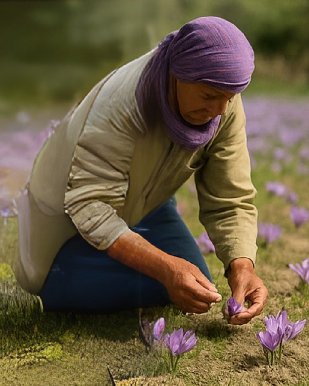 Delicately plucked by skilled farmers from the lush saffron fields of Pampore, known as the Saffron Town of India.